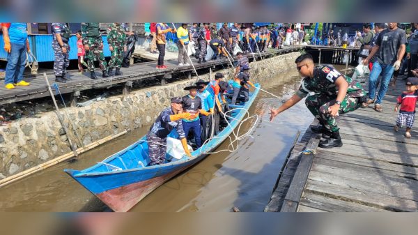NUNUKAN – Pangkalan TNI Angkatan Laut (Lanal) Nunukan, Kalimantan Utara, melakukan pembersihan sungai di Kampung Nelayan Mansapa, dalam rangkaian HUT ke 78 TNI AL....