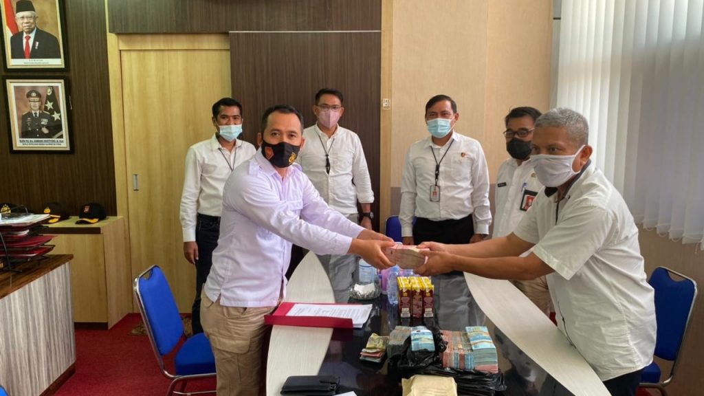 TANJUNG SELOR – Kepolisian Daerah (Polda) Kalimantan Utara menerima pengembalian uang dugaan tindak pidana korupsi pengadaan mesin X-Ray ruang tunggu VVIP Bandara Nunukan sebesar Rp.452.322.599,95, Kamis (4/2/2021).