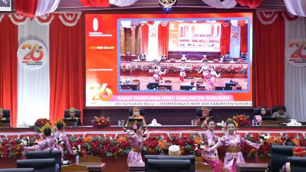NUNUKAN, KN —Lampu-lampu sorot meredup. Tepuk tangan meriah yang mengiringi Rapat Paripurna Hari Ulang Tahun (HUT) ke-26 Kabupaten Nunukan, Minggu (12/10/2025), perlahan sirna.
