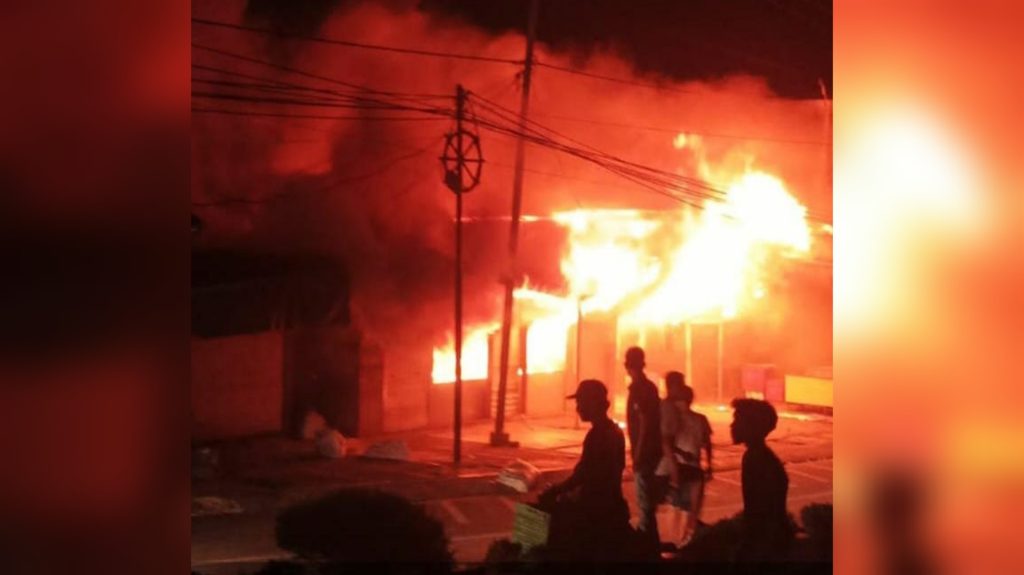 NUNUKAN – Kobaran api meluluhlantakkan 13 kios dan 2 unit gudang di Pasar Pagi, Nunukan, Kalimantan Utara, Minggu (7/5/2023).