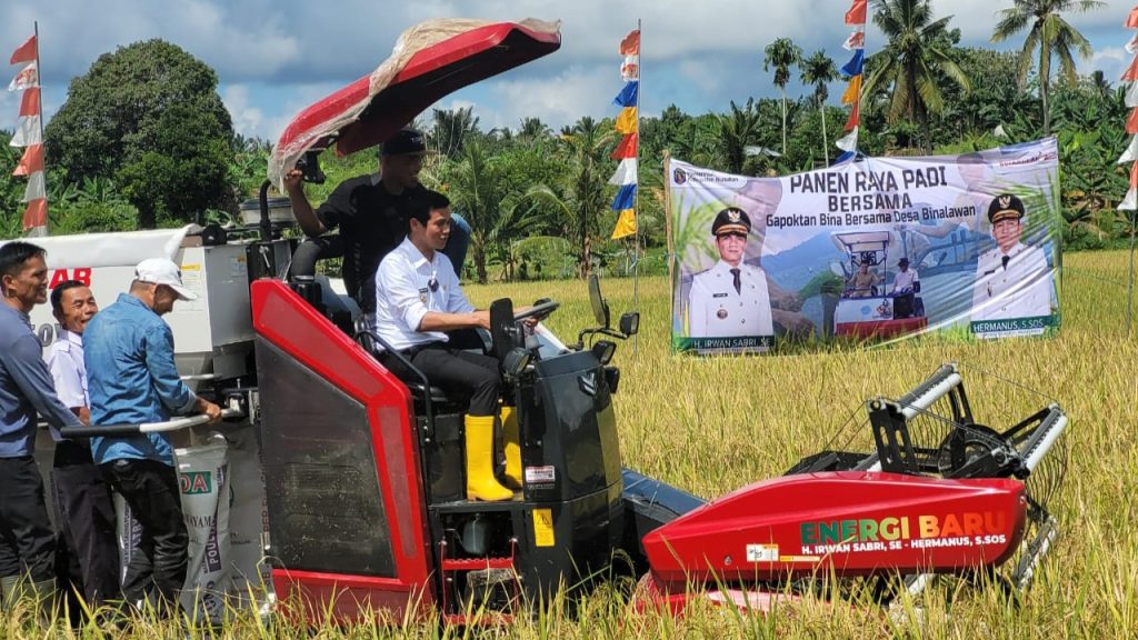 NUNUKAN, KN – Bupati Nunukan, Irwan Sabri, secara simbolis memulai panen raya padi di Desa Binalawan, Pulau Sebatik, Rabu (10/9/2025). Menggunakan mesin pemanen modern, combine harvester, ia ingin menunjukkan keseriusan Pemerintah Kabupaten Nunukan dalam menggenjot sektor pertanian di daerah perbatasan.