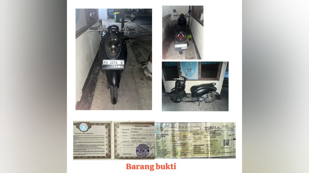 Catatan kepolisian menunjukkan WA sebagai residivis kasus penggelapan pada 2024. Kini, polisi menyita satu unit motor Scoopy hitam lengkap dengan STNK dan BPKB, serta selembar celana pendek milik pelaku sebagai barang bukti.