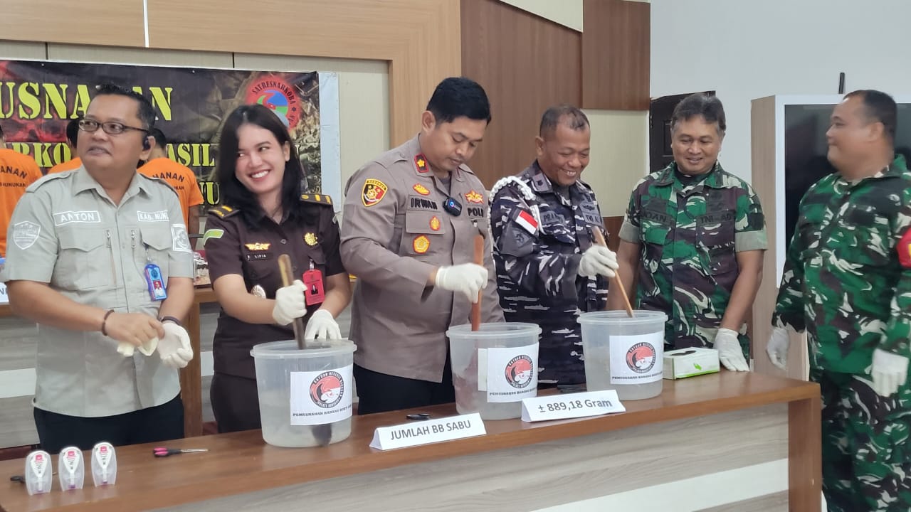 NUNUKAN, KN – Polres Nunukan, Kalimantan Utara, memusnahkan barang bukti narkoba jenis sabu-sabu seberat 889,18 gram, Selasa (2/12/2025).
