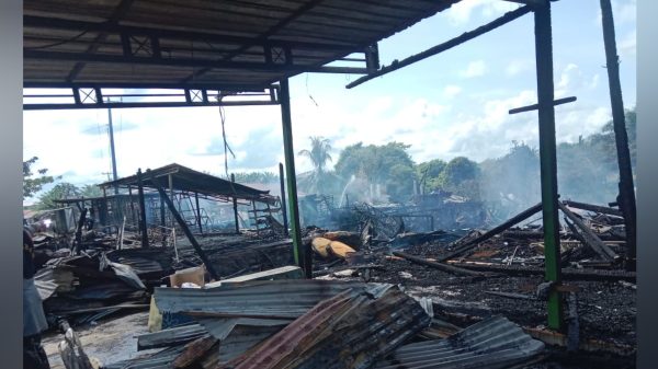 NUNUKAN, KN—Lidah api melahap lima rumah warga di Jalan Poros Provinsi, Simpang 3, RT 03, Desa Apas, Kecamatan Sebuku, Nunukan, Kalimantan Utara, Senin (15/12/2025)....