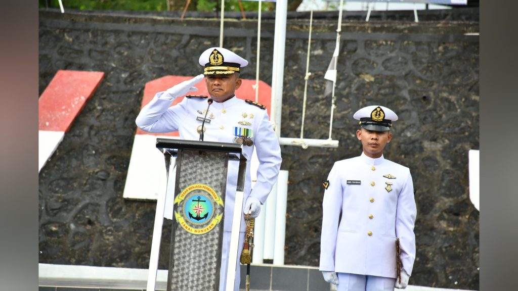 Danlanal Nunukan, Letkol Laut (P) Primayantha Maulana Malik, membacakan amanat Kepala Staf Angkatan Laut (KSAL), Laksamana TNI Muhammad Ali. Ia menyoroti pentingnya sinergi dan kepatuhan hukum.